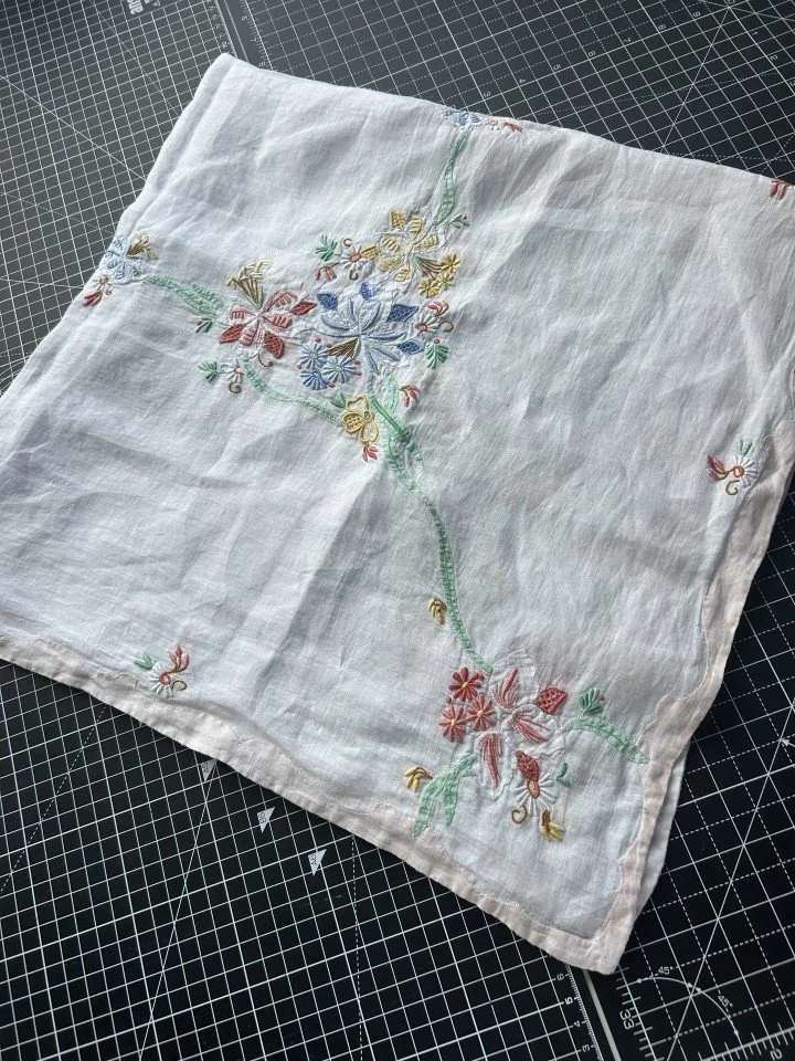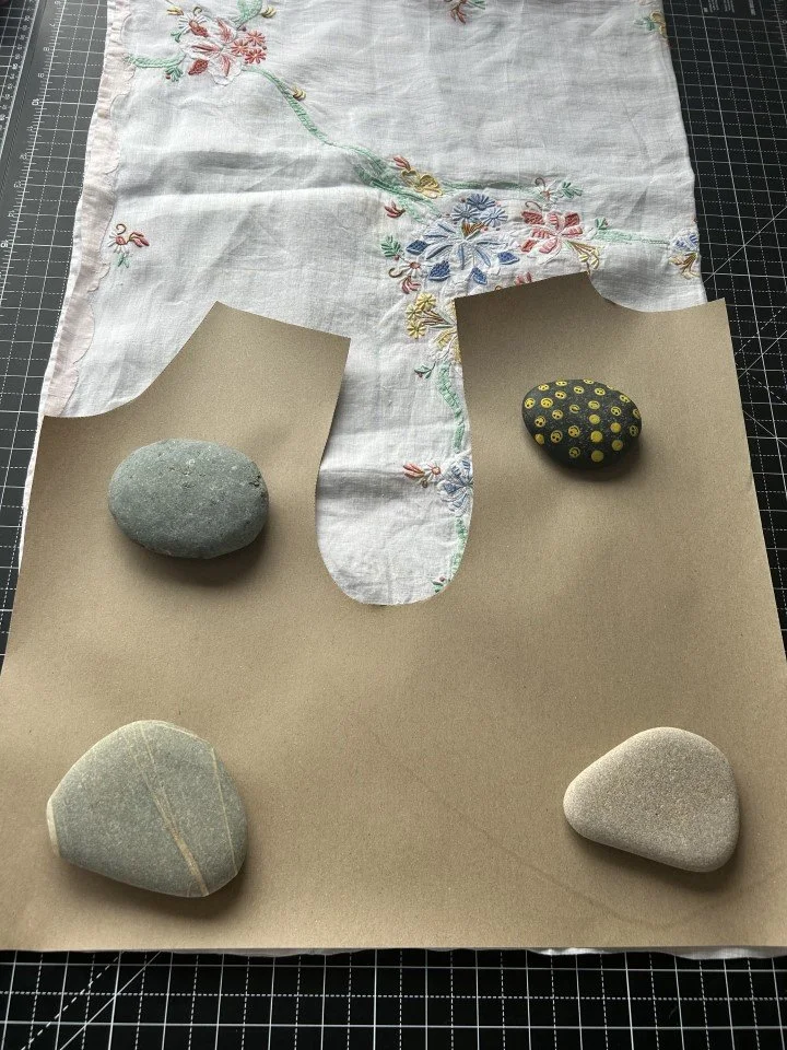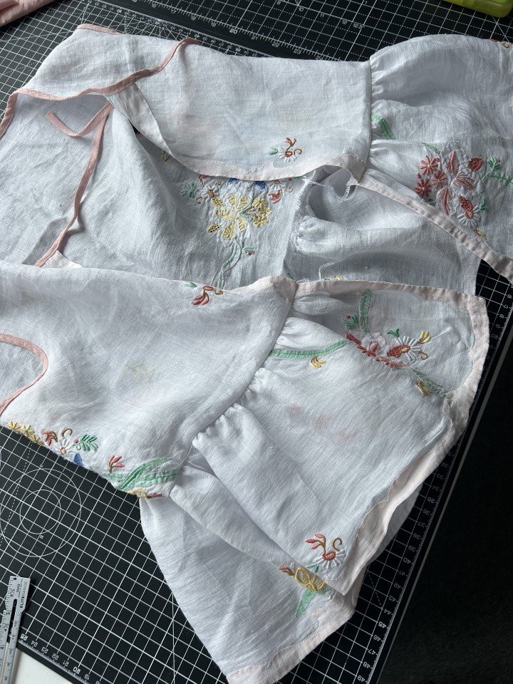 I found this gorgeous embroidered table cloth in a charity shop with the original intention of it becoming a skirt. However, after some designing and measuring I figured it would be better suited to a peplum style top.